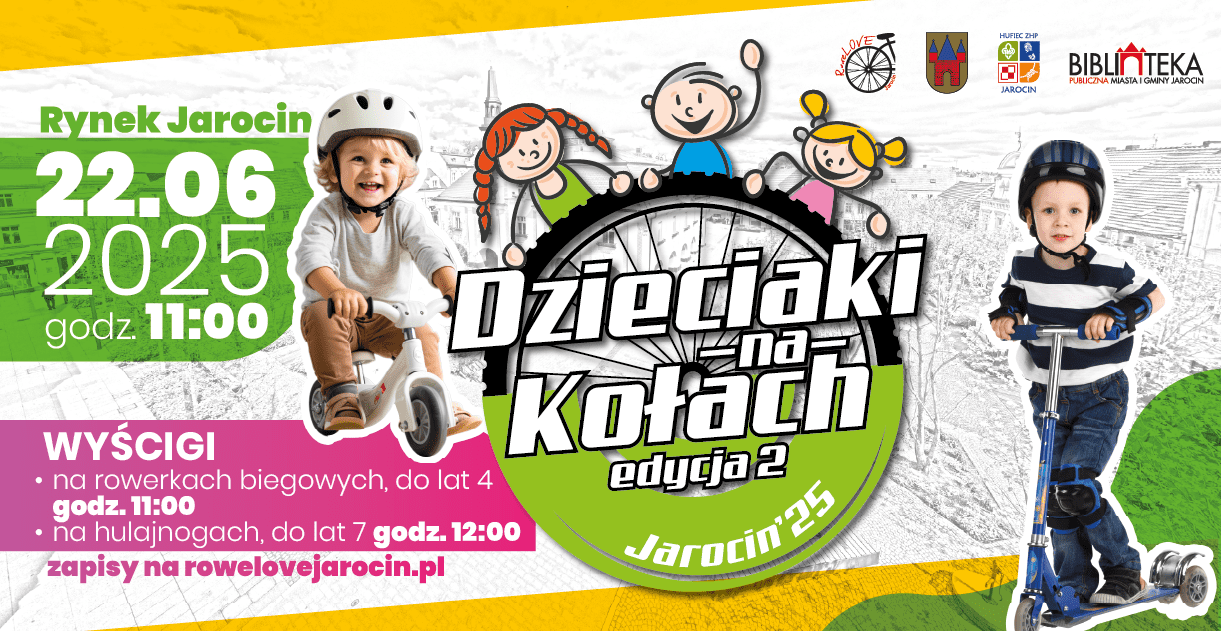 Po zeszłorocznym, ciepło przyjętym debiucie, „Dzieciaki na Kołach” znów pojawią się w centrum Jarocina. Już w niedzielę, 22 czerwca, na rynku w Jarocinie odbędzie się druga edycja wydarzenia dla najmłodszych miłośników ruchu na świeżym powietrzu.